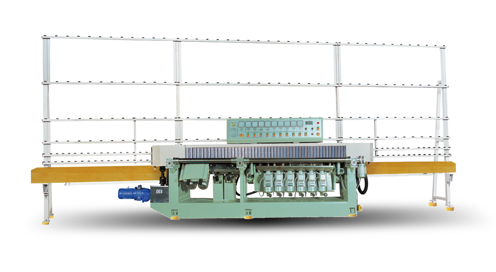 該機(jī)采用電動(dòng)控制,主要用于玻璃底邊及前大倒角磨邊及拋光,其中前面五個(gè)馬達(dá)角度在0°~45°間任意可調(diào),該機(jī)結(jié)構(gòu)簡單操作方便,價(jià)格便宜,最適宜工程玻璃和家具玻璃的批量生產(chǎn)。