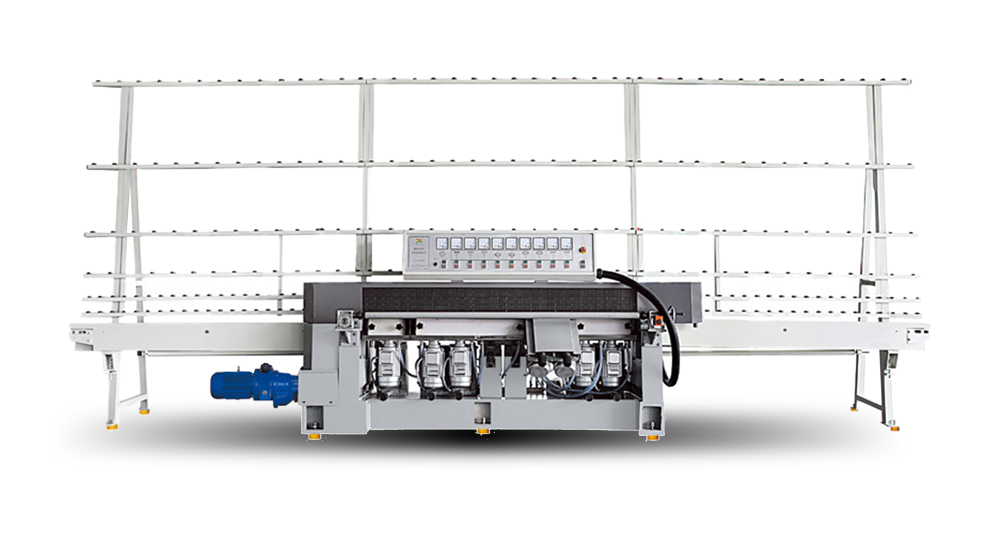 該機(jī)用于平板玻璃的底邊及棱角的磨削和拋光。采用特殊伸縮壓板,可磨削不同厚度的玻璃。本機(jī)操作簡(jiǎn)單,控制可靠,前導(dǎo)軌可平行移動(dòng),夾持玻璃方便可靠,倒角磨輪采用托板,磨削時(shí)無(wú)震動(dòng),其中9325P機(jī)型帶有單獨(dú)羊毛拋光可保證拋光亮度高,切削分配合理,加工成本低,質(zhì)量穩(wěn)定。各種機(jī)型均可選用ABB電機(jī)。